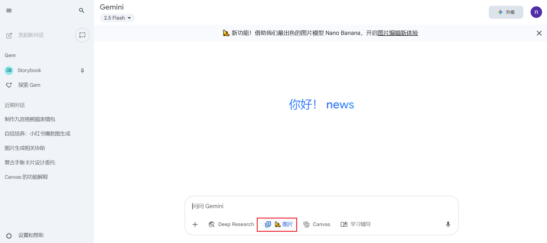登录 gemini 网站:https://gemini.google.com/app(需要魔法),选择 🍌 图标,即可使用