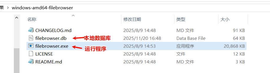 • 解压下载的压缩包,双击运行 filebrowser.exe 即可启动。