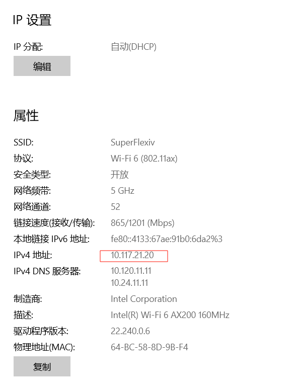 • Wi-Fi → 点击当前 Wi-Fi 名称