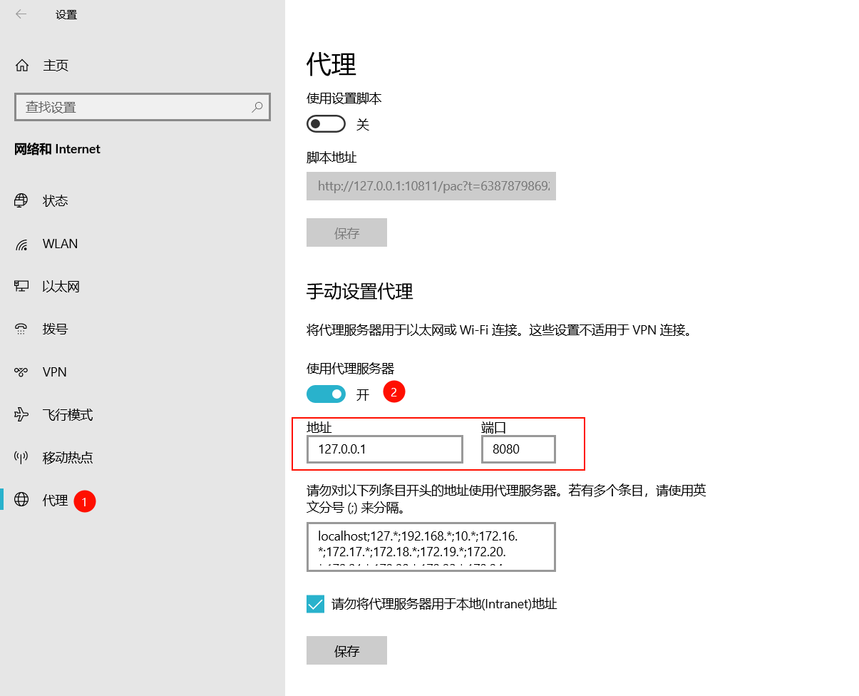 配置电脑代理,这里的端口要与mitmweb监听的一致。