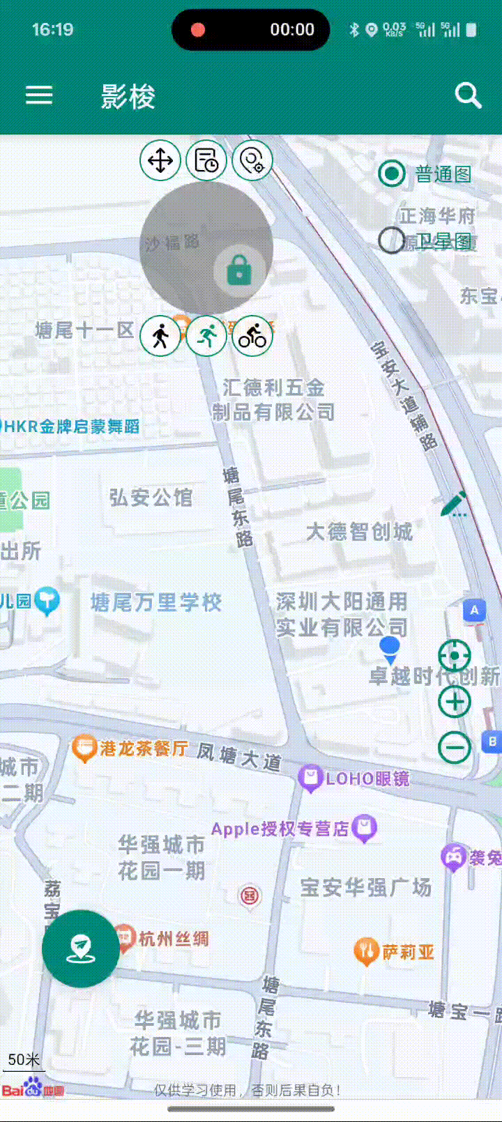 模拟运动模式,打开浮窗后,支持不同的速度和移动的方式,定位会自动移动。