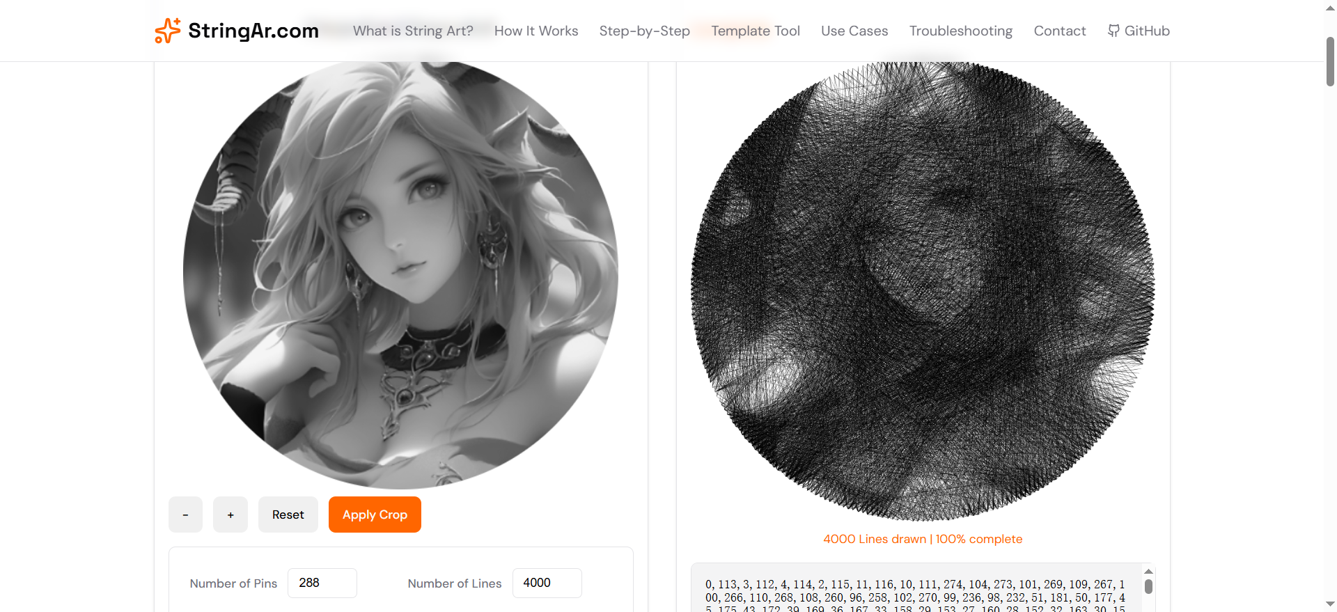 发现一个有趣的小工具,可以把任意照片转换成钉子线条艺术( String Art )的图案。