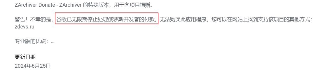 仔细一查才发现,ZArchiver 是由俄罗斯团队 zdevs 开发的,早在 Google Play 商店中就同时上架了免费版和付费版。但人家开发者自己都说了:付费版并不会解锁新功能,纯粹是用来接受捐赠、感谢支持的。